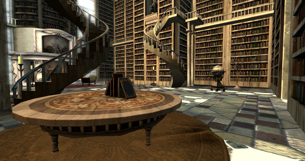 Grand Library, 11. Giant bookshelf 1a, 12.DRD MB library fireplace c/m, DRD MB library, 3.DRD MB library globe c/m